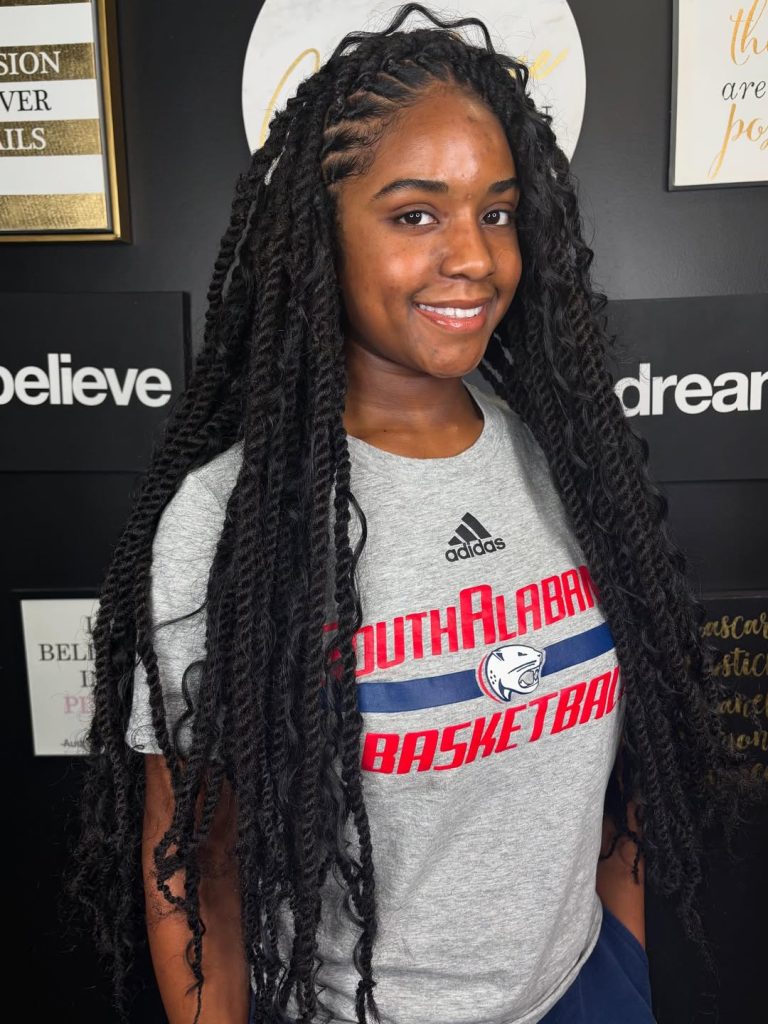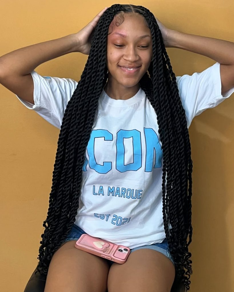 There’s a playful, youthful energy to this island twist style that instantly lifts your mood. The defined texture gives the twists personality, while the overall look still feels neat and intentional. It’s fun without being loud and expressive without trying too hard.