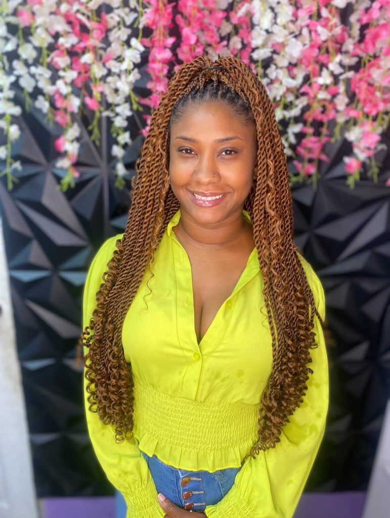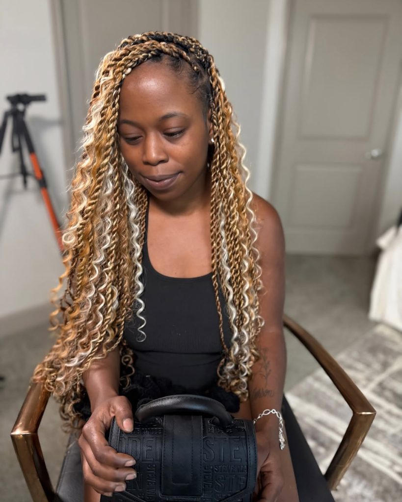 This island twist style instantly feels brighter and more expressive thanks to the soft blonde pieces woven through the front. It has that effortless “I woke up like this” confidence, where the twists do all the talking and your face naturally becomes the focal point. The contrast adds interest without overpowering the look, giving it a fresh, modern edge that still feels grown and intentional.