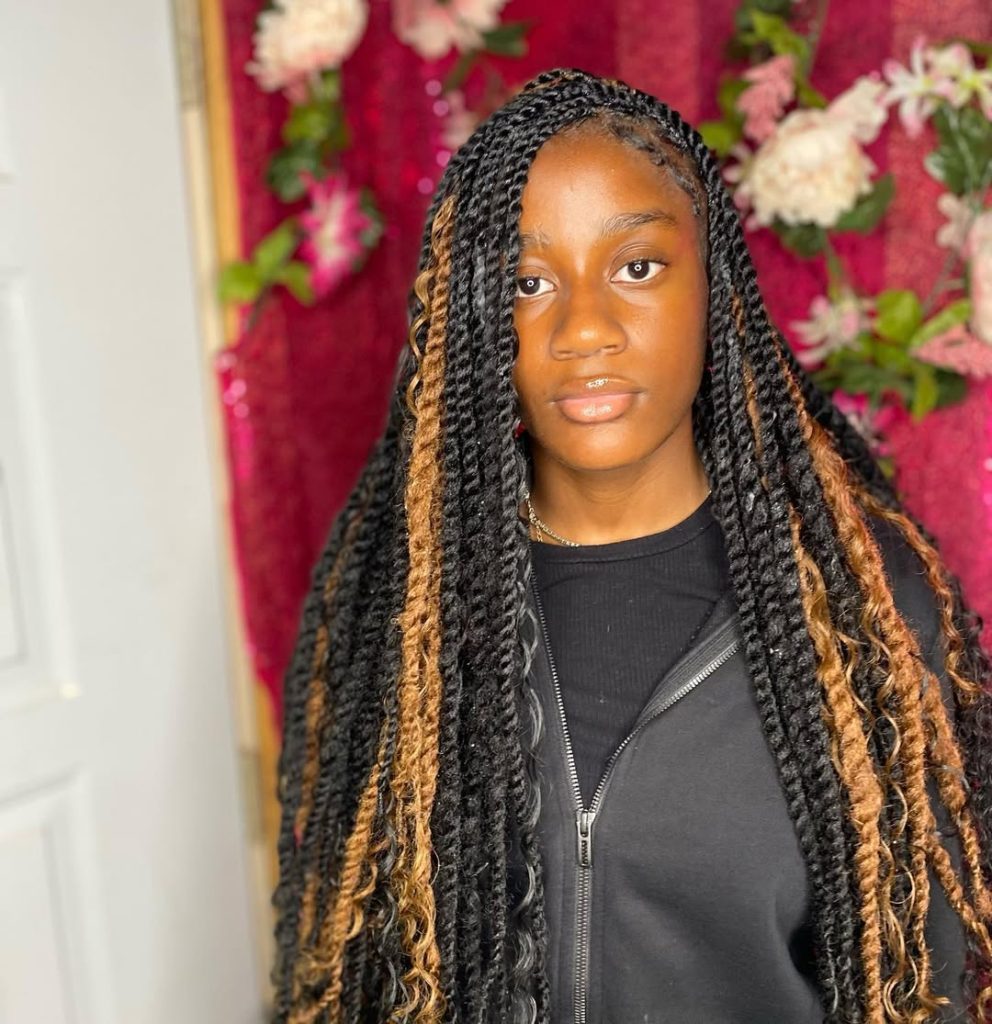This island twist style feels strong, grounded, and quietly elegant. The long twists fall smoothly, while the soft curls at the ends add just enough movement to keep the look from feeling too structured. It’s one of those hairstyles that gives you confidence the moment you catch your reflection—calm, polished, and very grown.