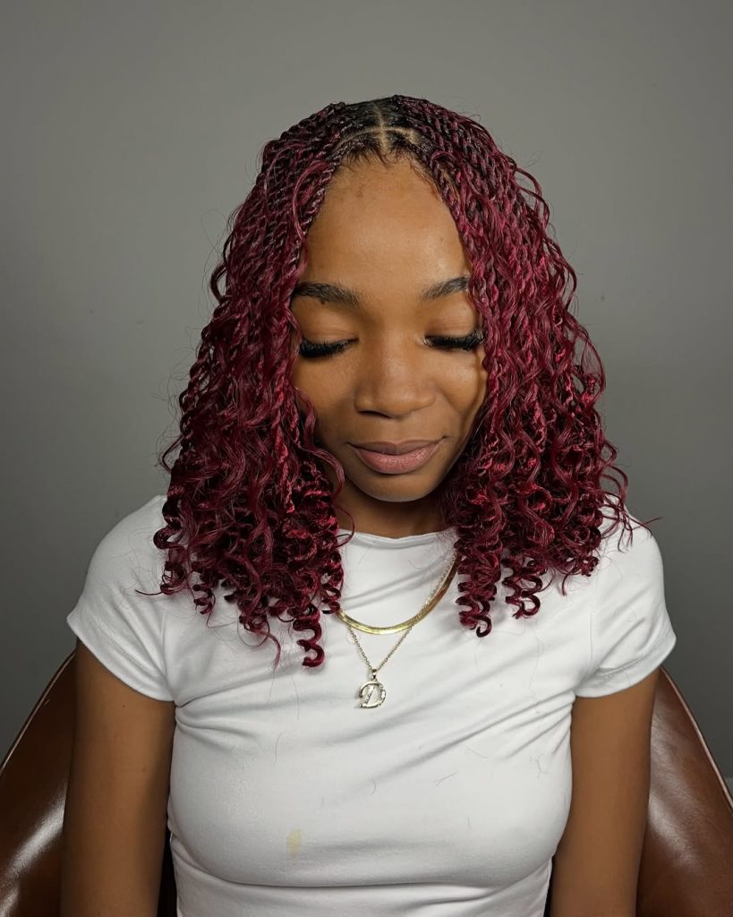 This burgundy island twist style feels rich, expressive, and quietly bold. The color immediately adds personality, while the soft curl finish keeps the look balanced and wearable. It’s the kind of hairstyle that feels like a personal signature—distinct, memorable, and full of character.