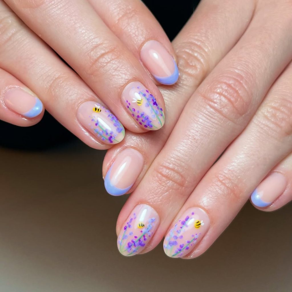 11. Short Lavender French with Tiny Bee Art