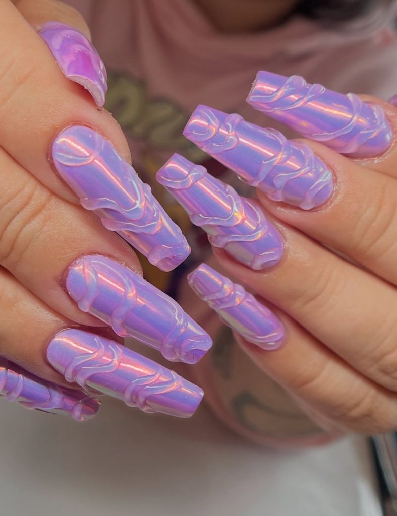 15. Long Acrylic Lavender 3D Chrome Design