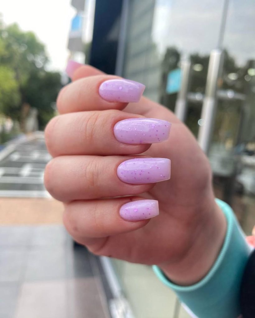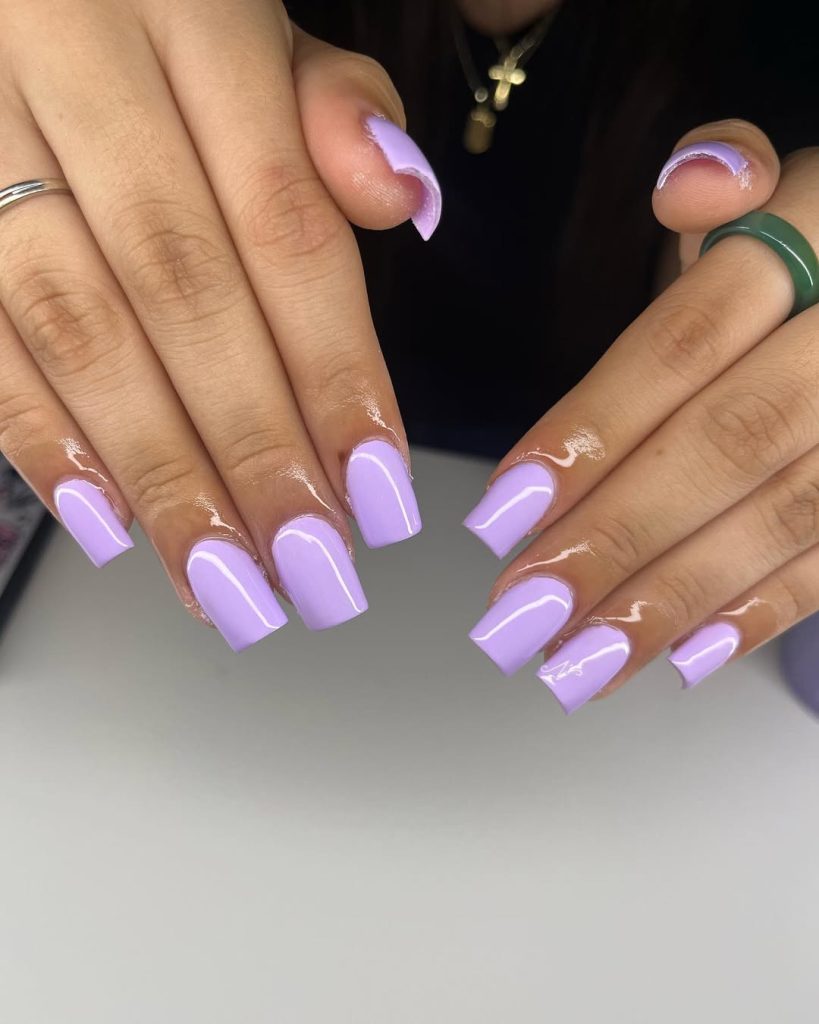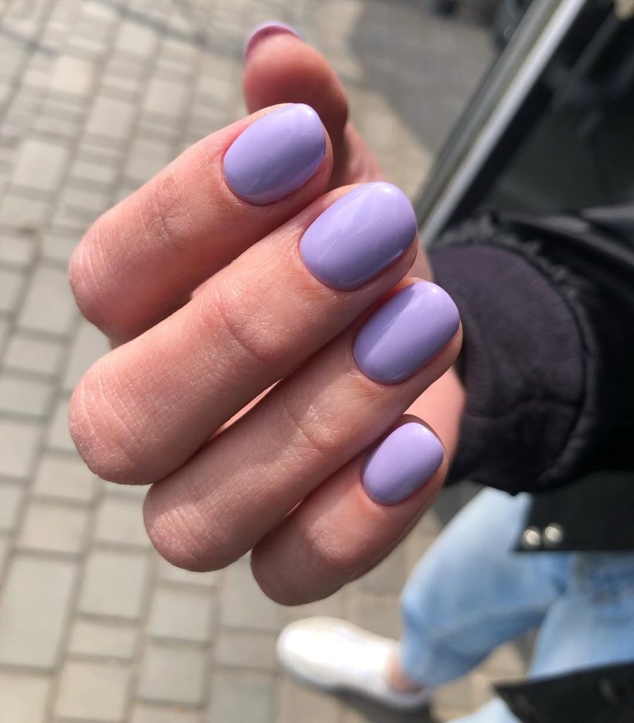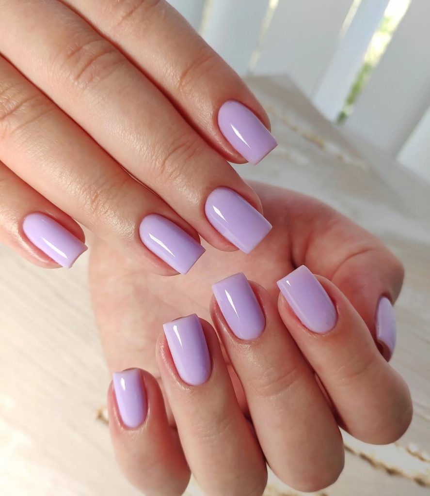 14. Short Glossy Lavender Everyday Nails
