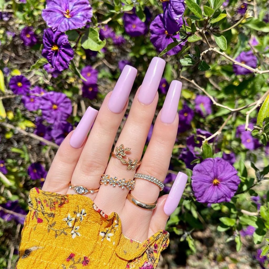 23. Long Coffin Lavender Statement Nails
