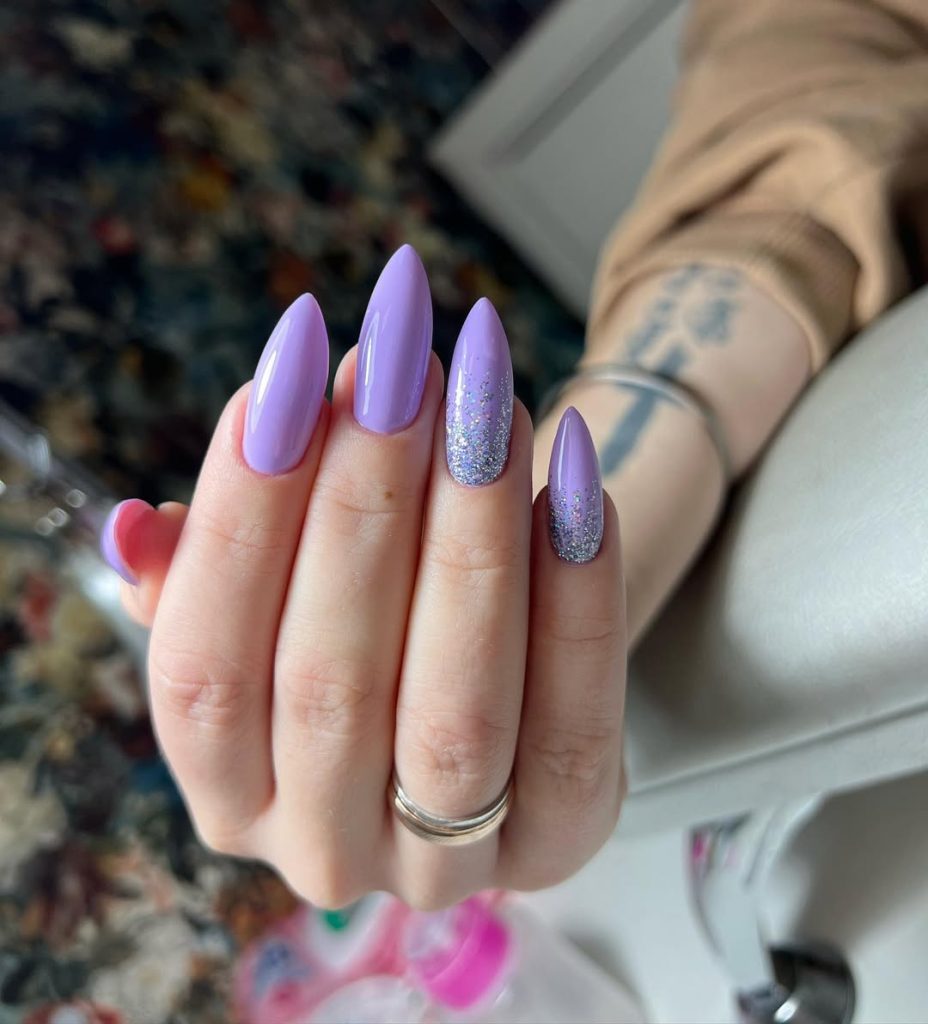 5. Glitter Fade Lavender Almond Nails