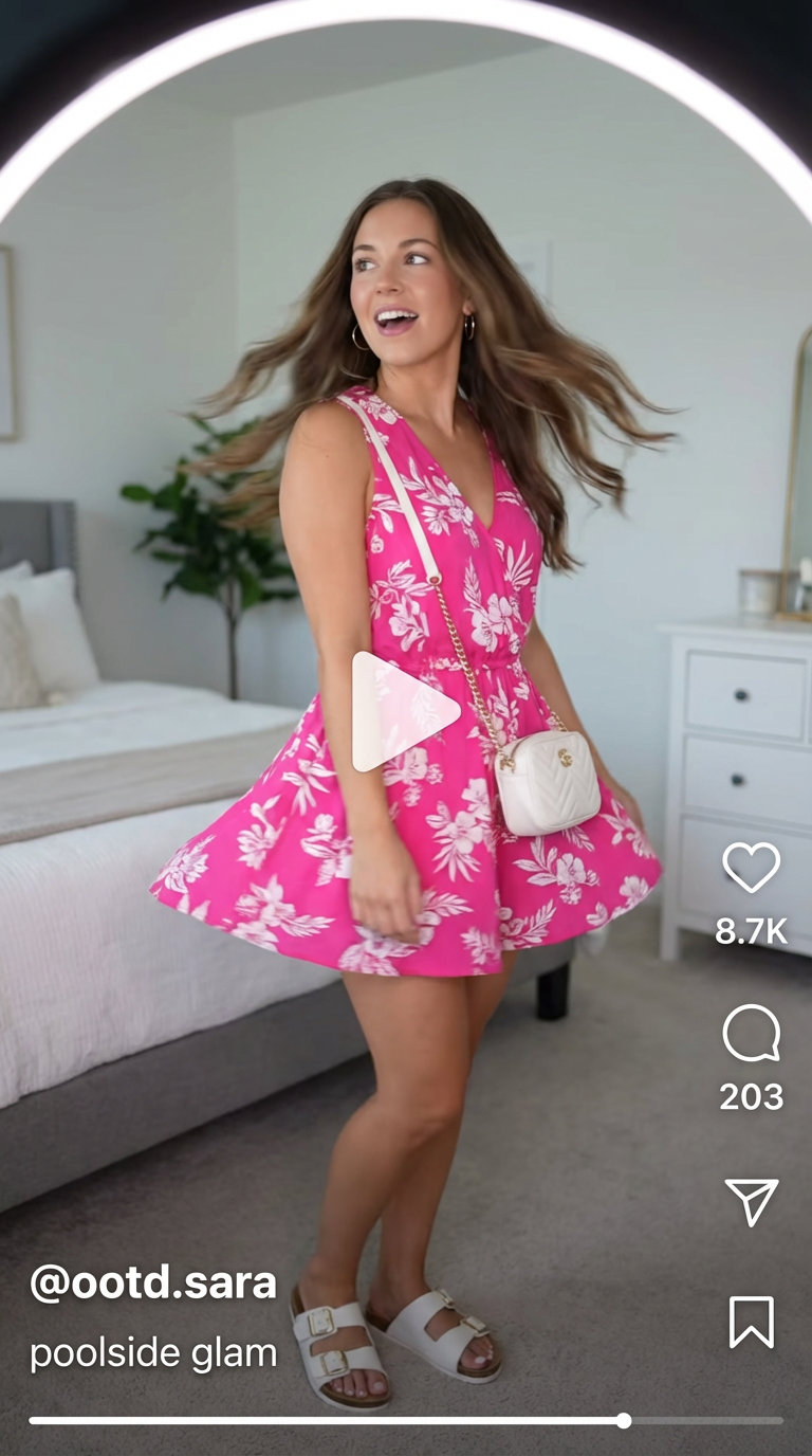 Our verdict is that this outfit perfectly achieves a chic, vibrant elegance fit for a summer soiree. The floral dress acts as a strong hero piece, creating an aspirational look that remains accessible and highly savable for style inspiration boards. To complete the ensemble, a soft, natural makeup look with a hint of coral on the lips will beautifully tie everything together. We also suggest adding a delicate gold bracelet to enhance the elegant feel without over-accessorizing and competing with the bold floral print.