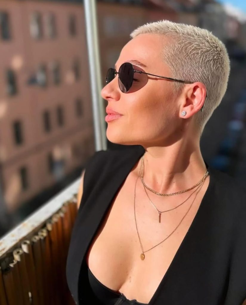 18. Sleek Micro Pixie with High-Fashion Attitude