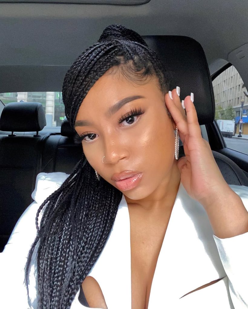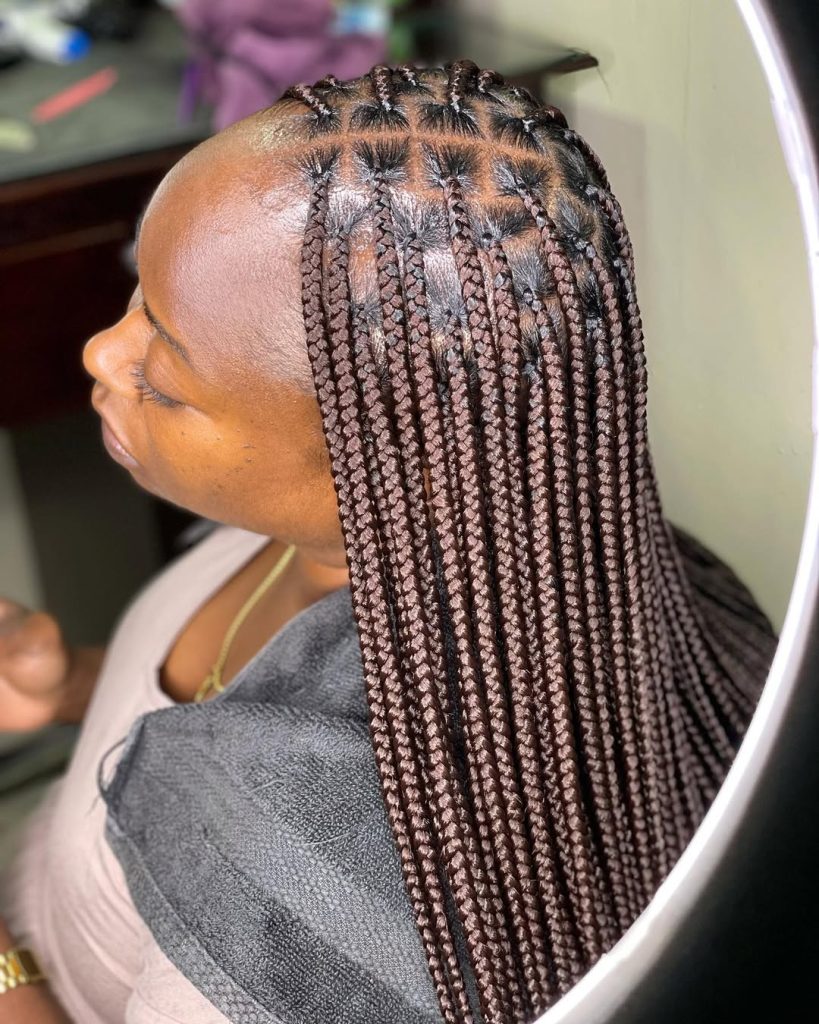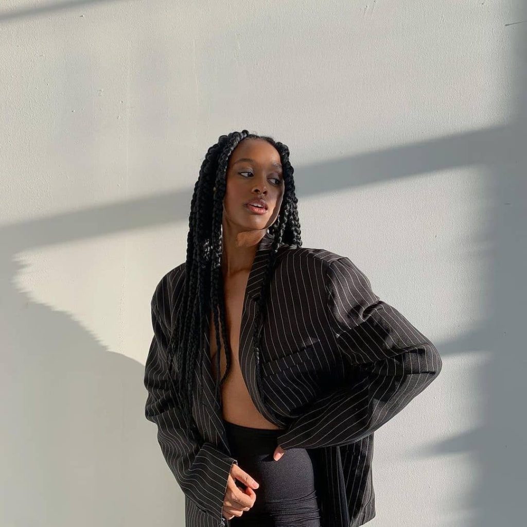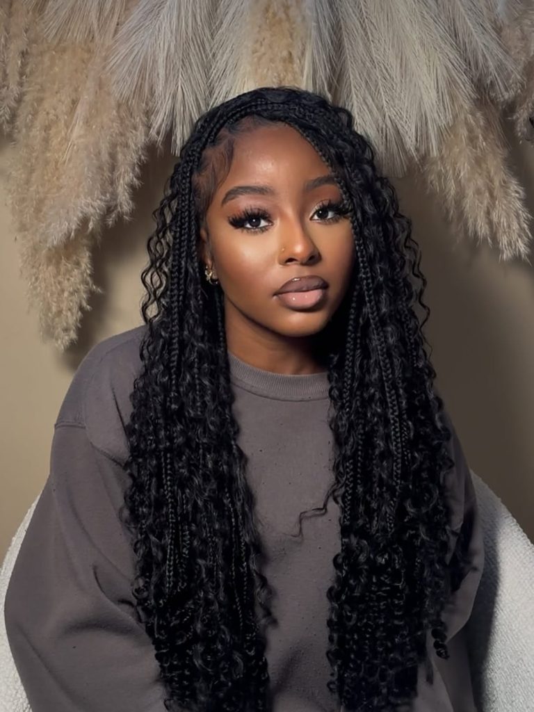 This style works beautifully for women who love long protection options and want something that truly lasts. It’s especially flattering on medium to thick natural hair and can be worn loose, in a high updo, or even styled into short braids with kinky curly ends for variety. Keep the scalp hydrated and protect it at night with satin. This style is a sign that you’re ready for a bold braid moment.