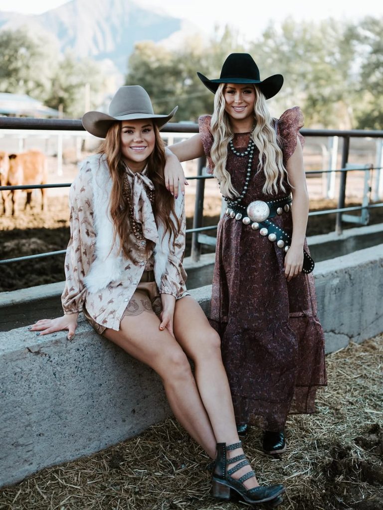 These two outfits capture the softer, more romantic side of Western fashion—airy fabrics, earthy tones, and beautiful accessories that give everything a dreamy, fall-ready vibe. Both looks feel modest but still chic, perfect for women who prefer something classy with a gentle Western touch. The hats and jewelry keep the outfits grounded in Western country cowgirl fashion while still looking modern for 2026.