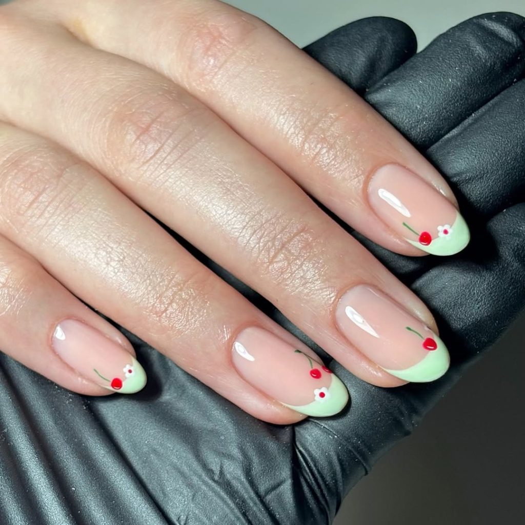 These lime-accented French tips feel playful, energetic, and very spring-forward. The clean, glossy base balances the youthful spark, keeping the overall look mature and wearable. It’s the kind of manicure that instantly lifts your mood—bright enough to feel enjoyable, yet controlled enough to stay classy. Perfect for those days when you want your nails to quietly say, “I’m feeling good.”