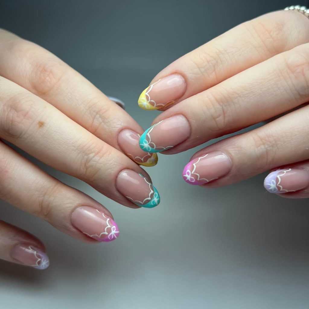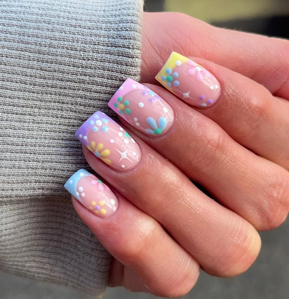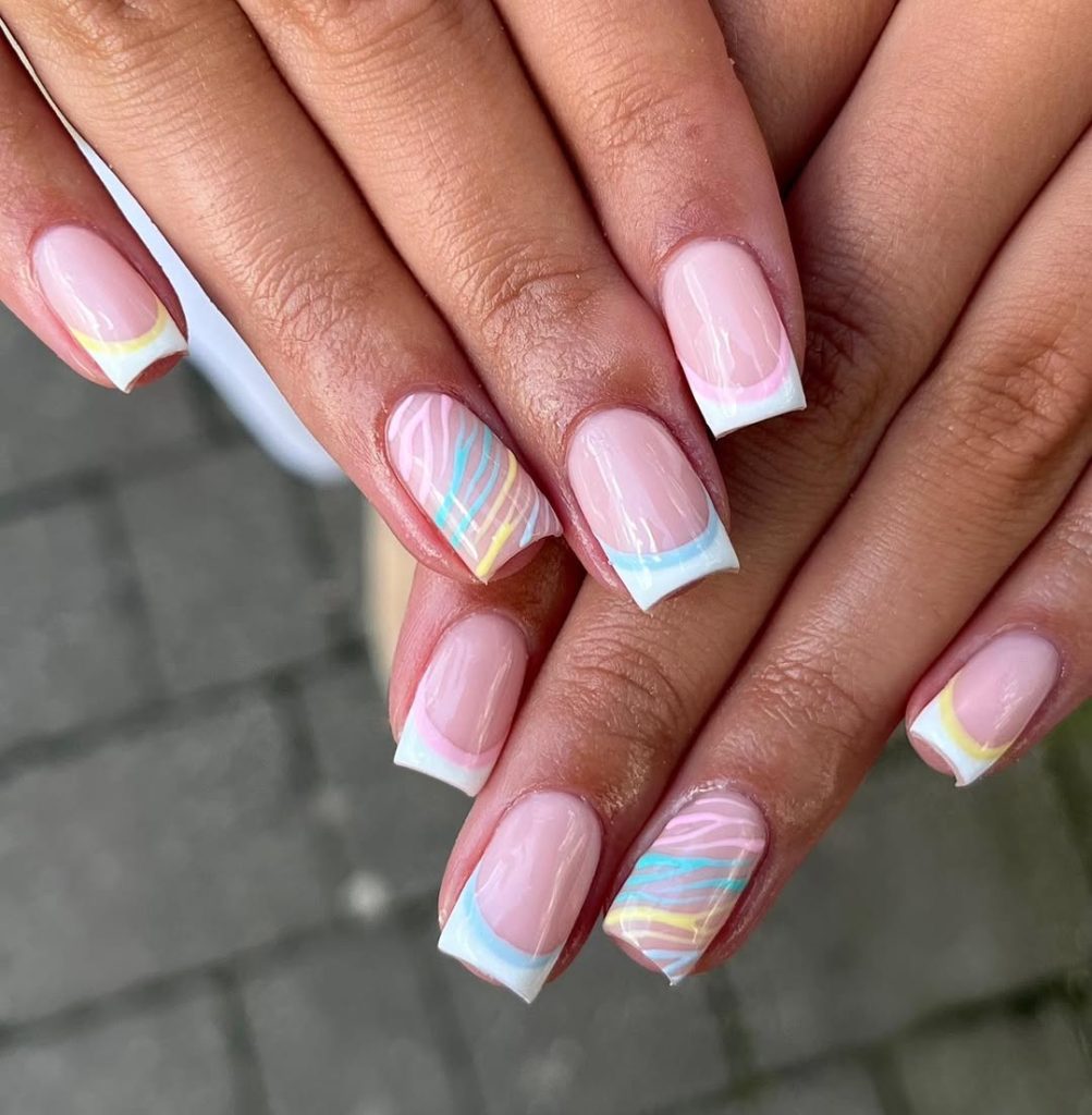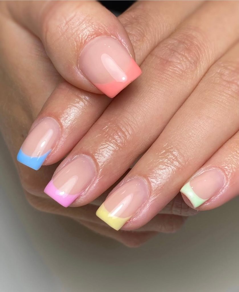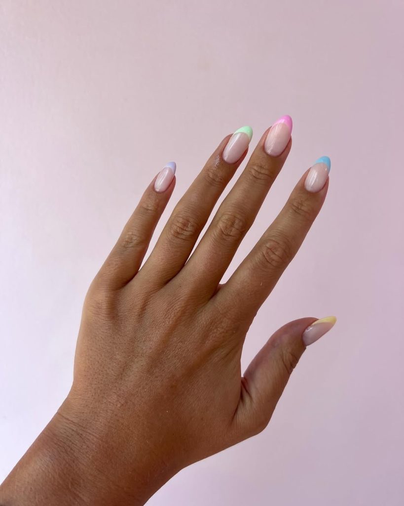 4. Pastel Rainbow French Tips for a Soft Spring Look