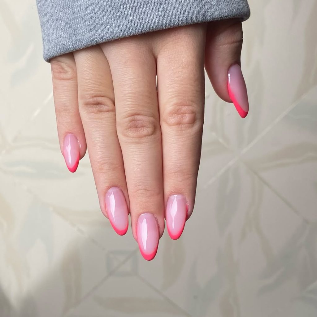 16. Almond-Shaped Soft Gradient Pink French Tips