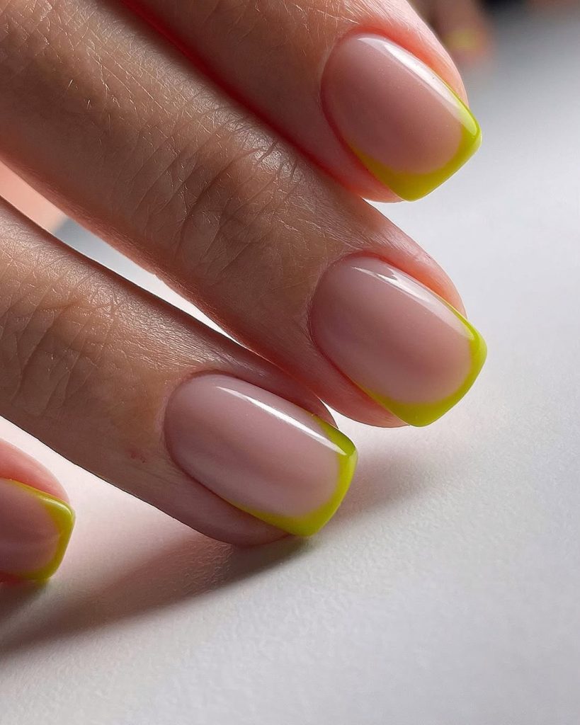 There’s something quietly uplifting about a soft yellow edge paired with a clean, milky base. This look feels like the first warm morning of spring, when you open the windows and everything suddenly feels lighter. It’s fresh without trying too hard, pretty without being sweet, and has that effortless charm that makes you glance down at your hands more often than usual. The yellow isn’t loud or neon—it’s gentle, calm, and surprisingly classy, giving these nails a subtle glow that works beautifully with cozy knits or crisp white shirts.