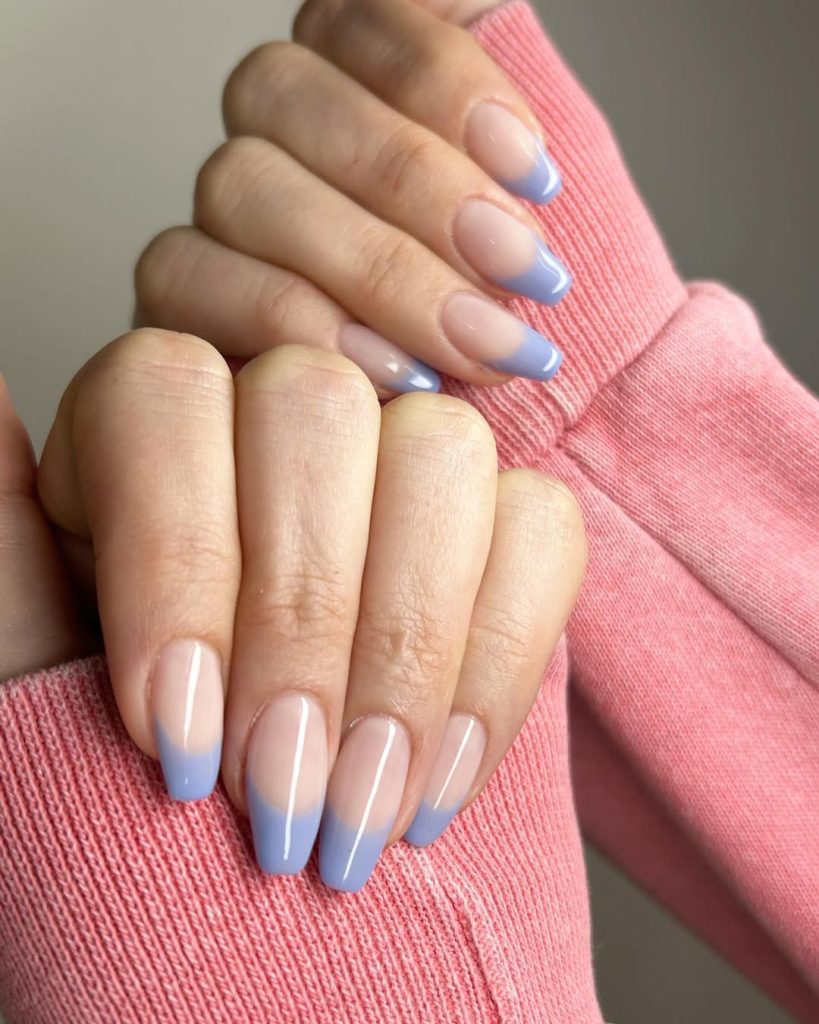 This design is perfect if you’re drawn to simple ideas that still feel modern in 2026. The almond shape subtly elongates the fingers, while the blue tip adds a fresh seasonal touch without overwhelming the natural base. It’s an inexpensive choice for everyday wear, especially if you want colors that feel calm, wearable, and effortlessly classy.