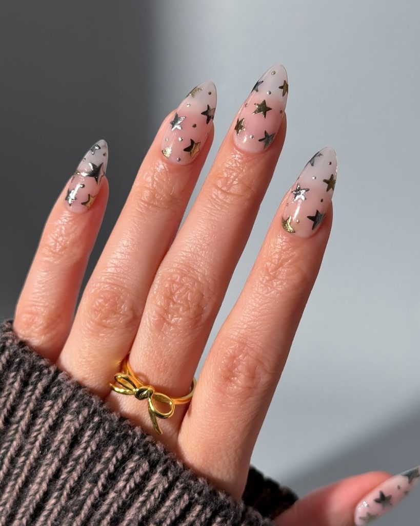 10. Gold and Silver Star Scatter Nails