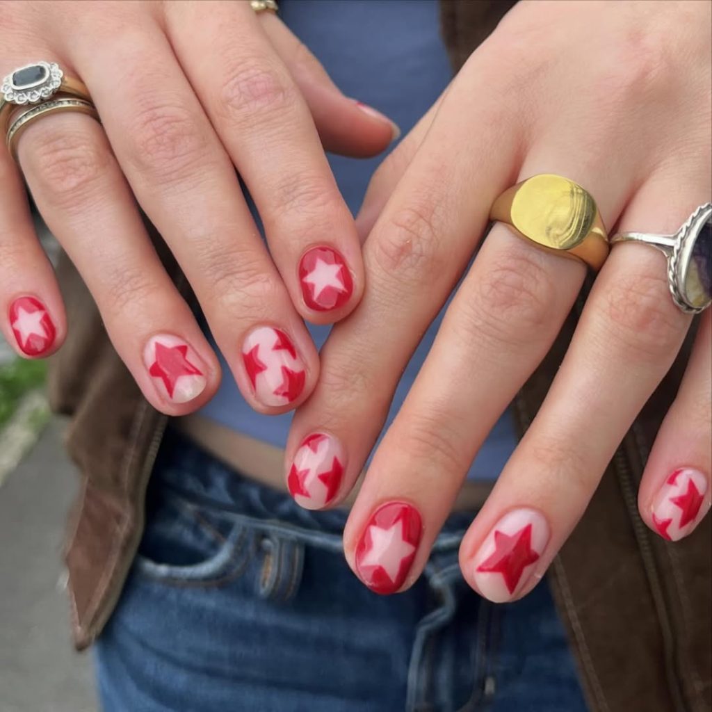 20. Red Retro Star Nails