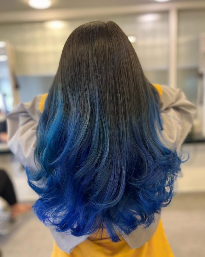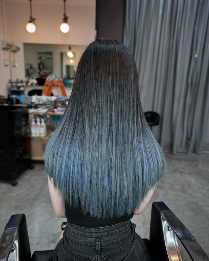 This smooth transition from deep Dark hair into a cool-toned Blue feels incredibly polished, almost like silk catching light. It’s understated but still undeniably modern, giving off that effortless “I just know what works for me” energy. The softness of the blend makes it feel wearable, even if you’ve never tried bold Color before.
