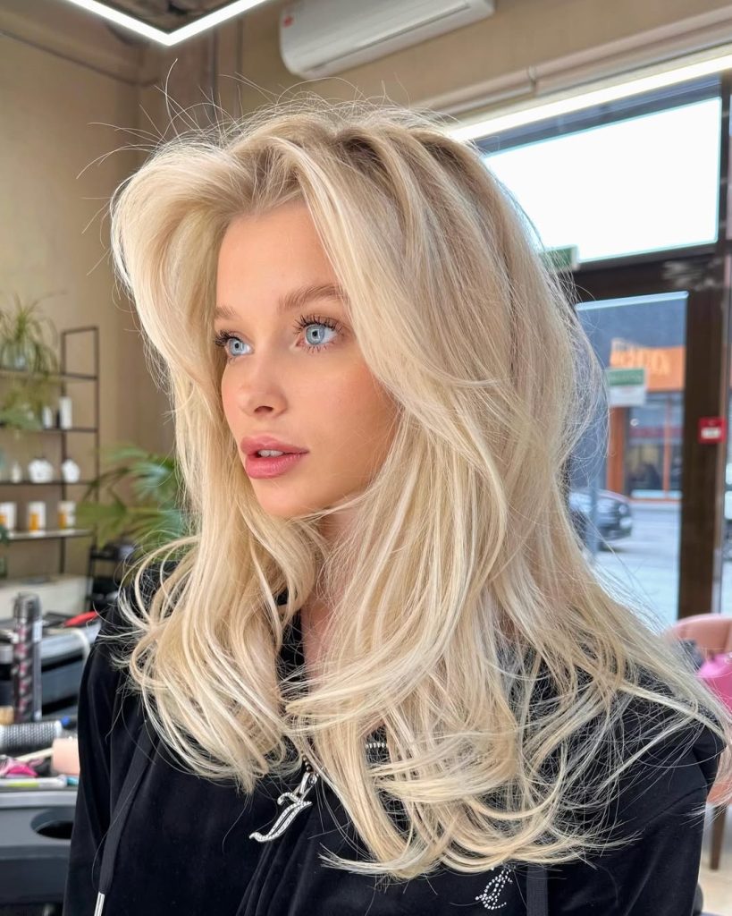 What makes this style so special is the way it frames the face while adding body throughout. It’s perfect for blondes who love a statement look without going into bold-color territory. A round brush and volumizing spray are your best friends here, helping you recreate that salon-fresh finish all through 2026.