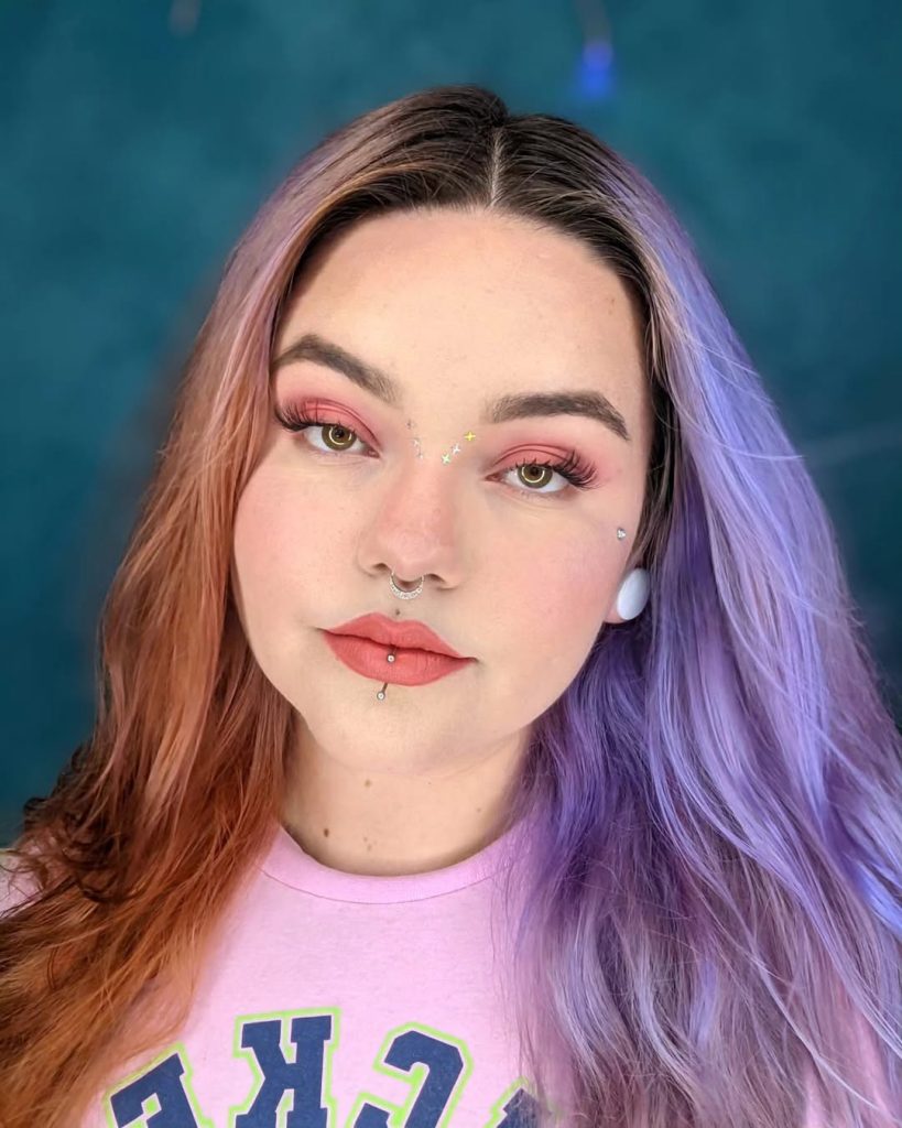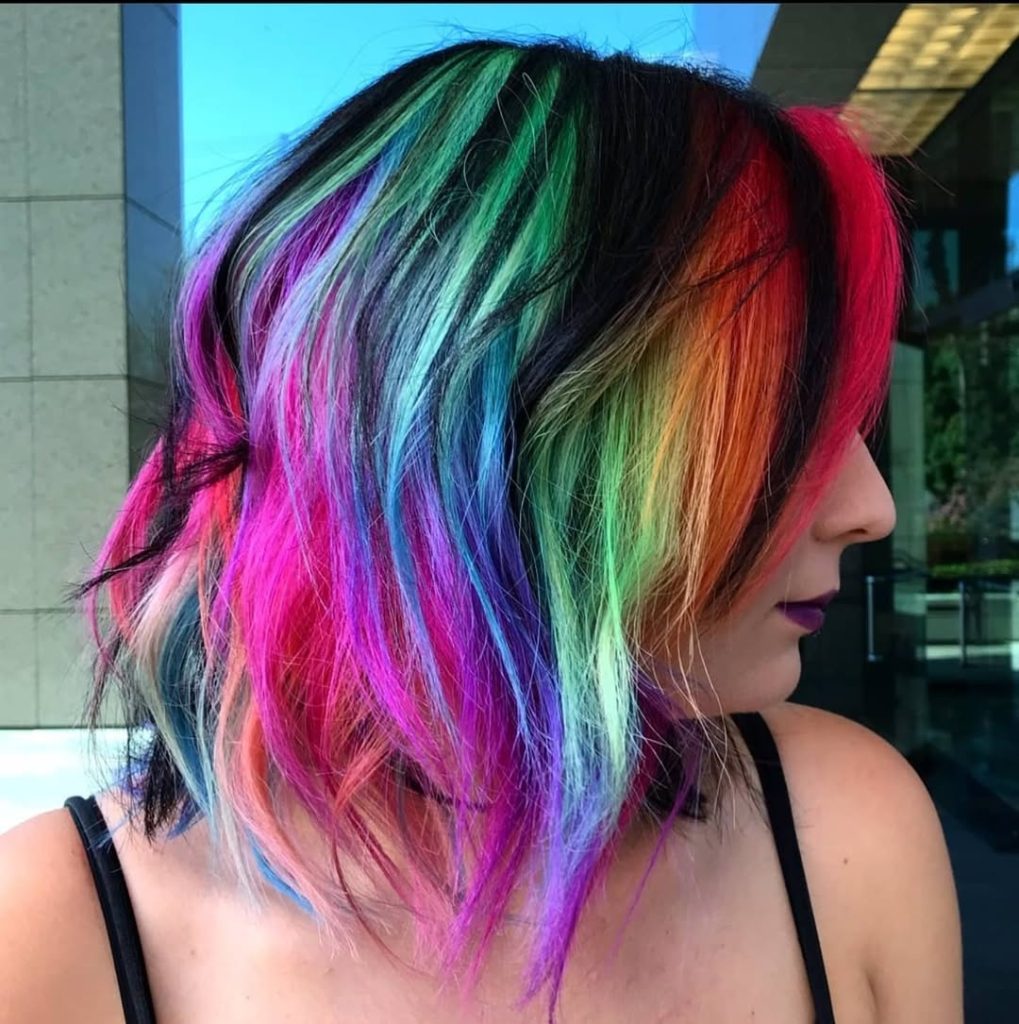This look gives off a confident, expressive vibe that’s perfect for anyone who loves standing out. It works especially well for brunettes’ colorful styles, where the darker base enhances the intensity of the hues. It’s a true statement for 2026.