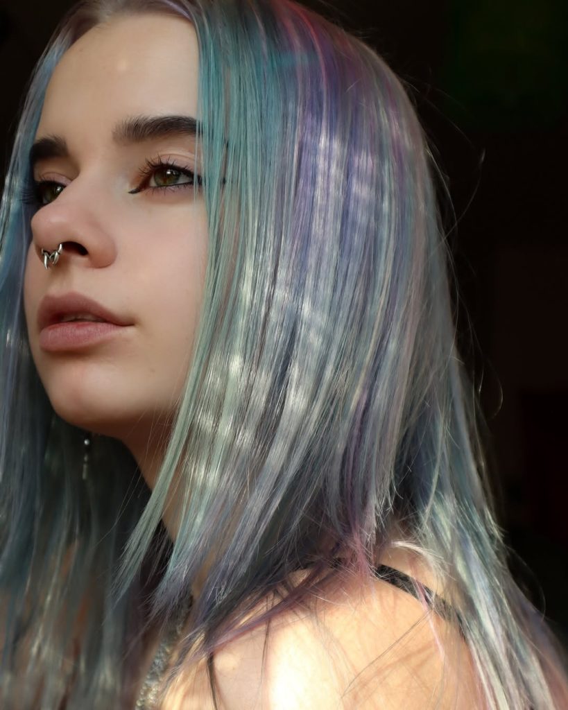 There’s something almost magical about this soft mix of shimmering tones. The subtle hints of Purple, Blue, and cool Blonde create a dreamy, iridescent finish that shifts beautifully in different lighting conditions. It feels delicate yet creative, like wearing a piece of art that changes with every movement.