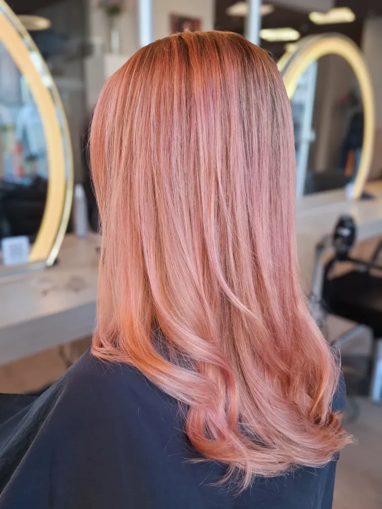 This delicate blend of Pink and Blonde creates a soft, glowing finish that feels romantic and fresh. The peachy undertone adds warmth, making the Color feel approachable and flattering rather than overpowering. It’s one of those shades that instantly softens your whole look.