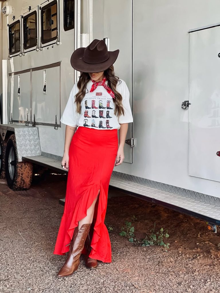 This fashion trend is ideal for women who wish to wear a comfortable and trendy ensemble. Maxi skirts are also in trend and can be combined with denim to create a simple and elegant look. This style looks great on curvy and short women because it creates a comfortable flow effect along with elegance that’s perfect for music nights or rodeo nights.