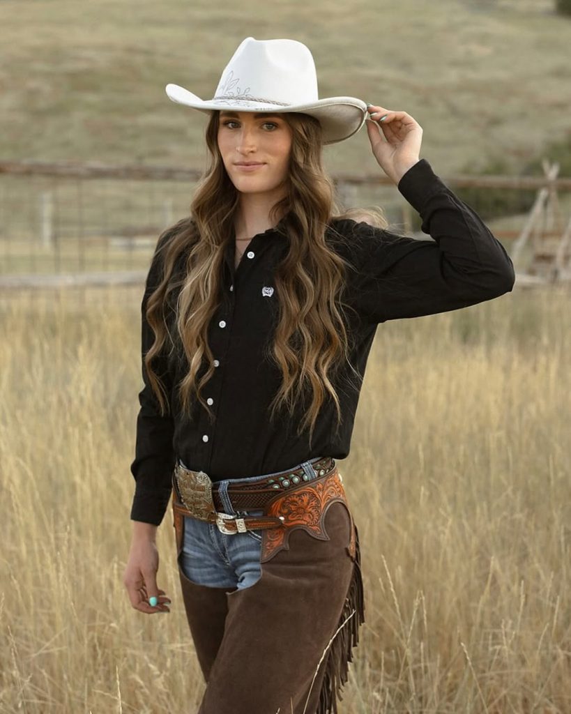 This ensemble will perfectly suit women who favor the professional western look. This type of apparel will be suitable for riding competitions and ranch parties because of its functionality and western fashion. In addition, the embossed leather plays an iconic functional role and makes a comeback trend in 2026 fashion. This will give the outfit a dressy touch, ideal for a rodeo competition or a photo shoot.