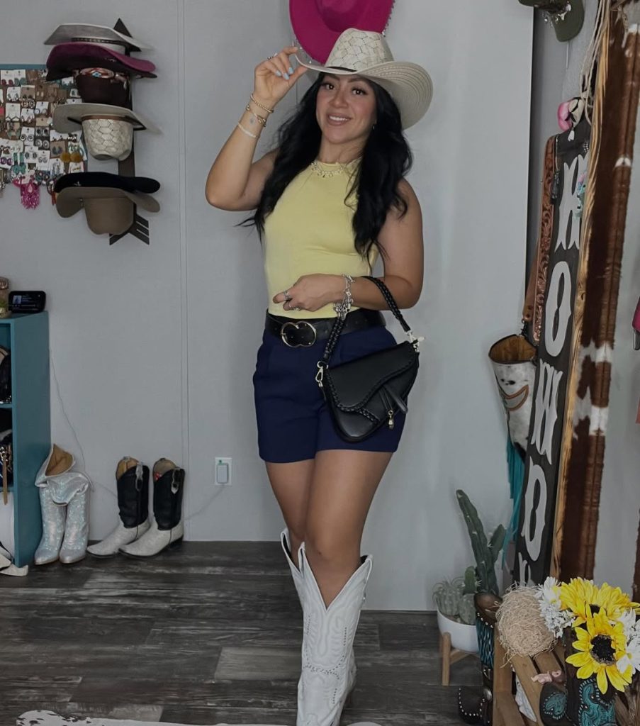 This fashion fits women who like to combine color and westerns perfectly. This will work best because of the clean-cut legs of the shorts and also the fitting boots. Wear the fashion to a party, concert, or maybe a rodeo over the weekend because this fashion will work perfectly because it’s aligned with the trends of 2026 western fashion.